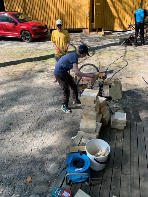 Mukaan ovat päässeet myös lapset, jotka ovat vasaroineet, poranneet, ruuvanneet, maalanneet ja kantaneet.