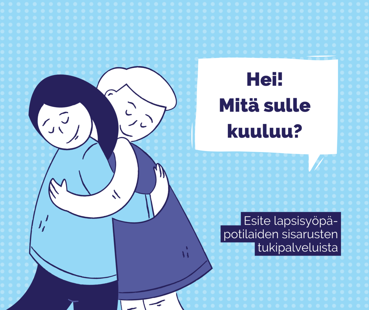 Diakonia-ammattikorkeakoulun sairaanhoitajaopiskelijat Paulina, Fanny ja Joanna ovat toteuttaneet yhteistyössä Kympin Lasten kanssa esitteen lapsisyöpäpotilaiden sisaruksille. Esitteessä kerrotaan tukipalveluista, ja tietoja voidaan täydentää paikallisesti.