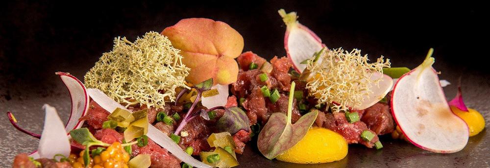 - Alkupalalajitelma, Juuriselleritartar, graavattua siikaa perunaletulla ja maalaispatee