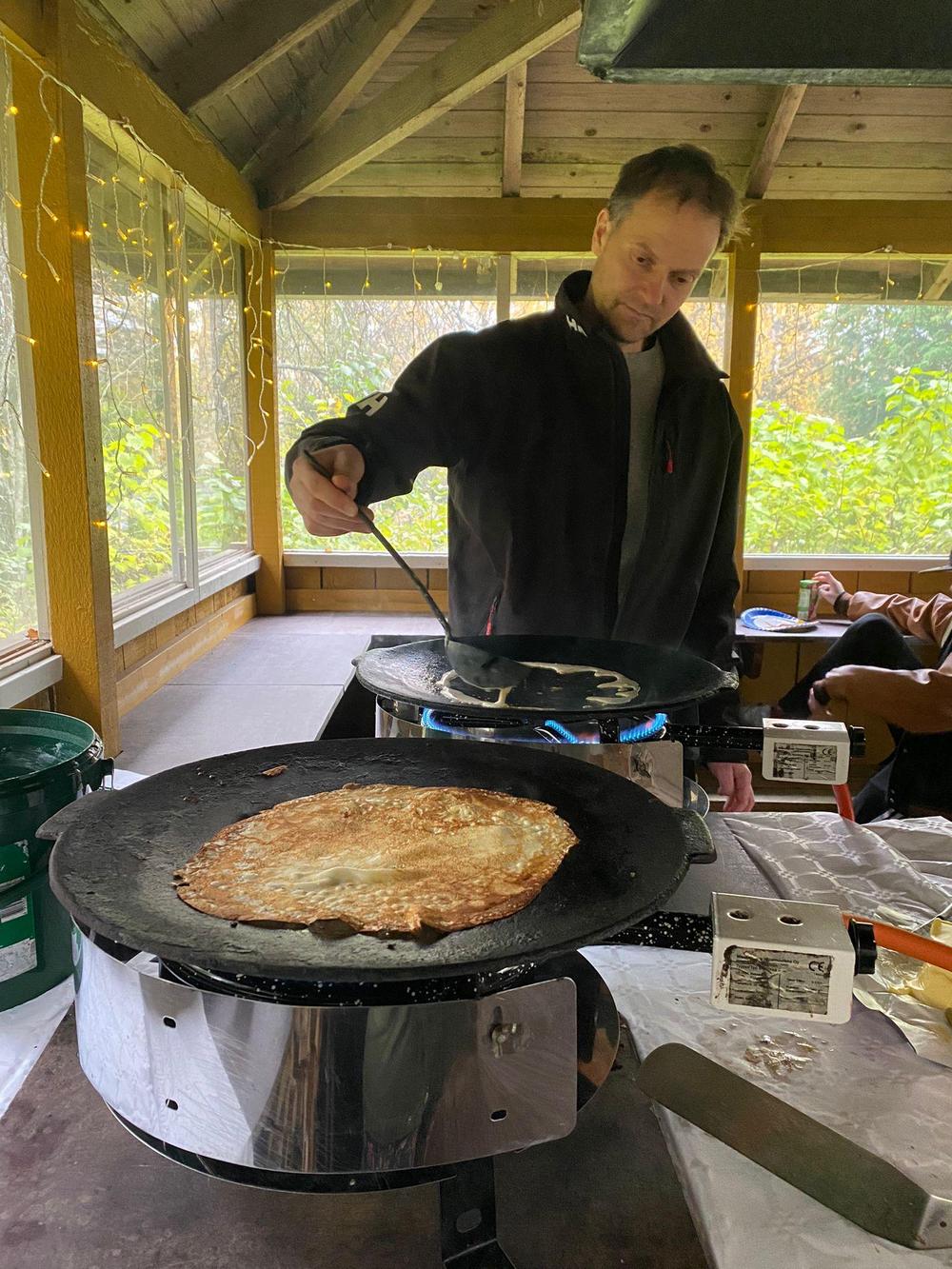 Iltaisin lämpeää iso puusauna, vaihtoehtoisesti käytössä on myös pienempi sähkösauna.