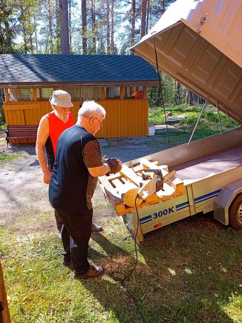 Iltaisin lämpeää iso puusauna, vaihtoehtoisesti käytössä on myös pienempi sähkösauna.